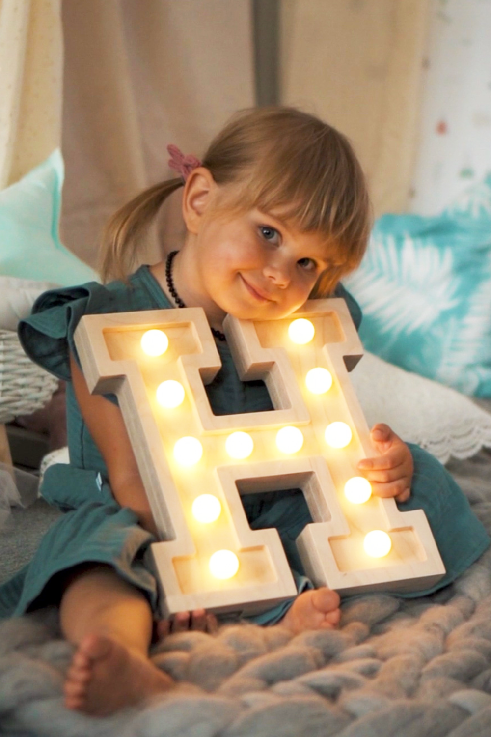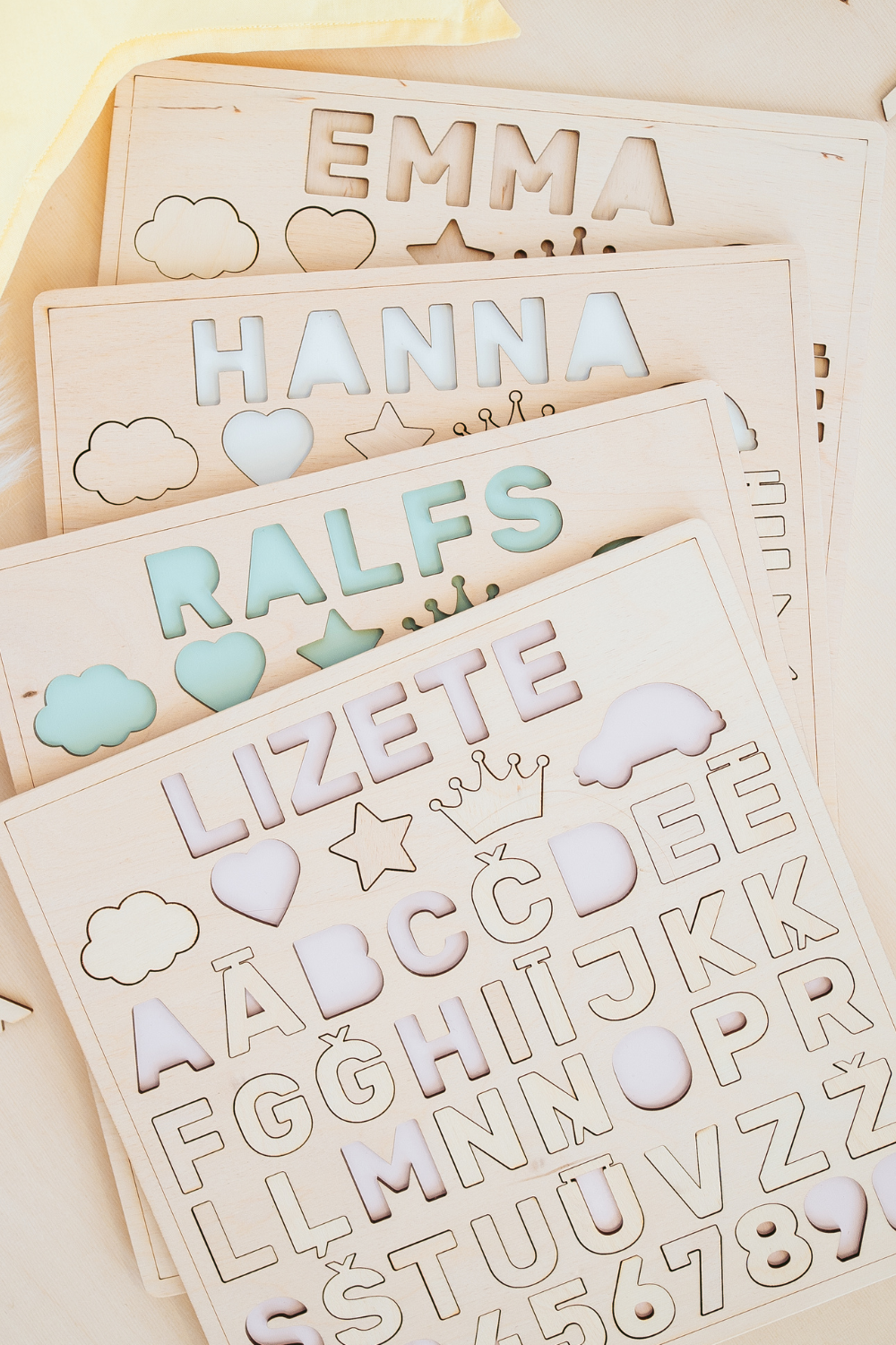 Natural birch wood and letters are made with golden foil, looks just gorgeous.